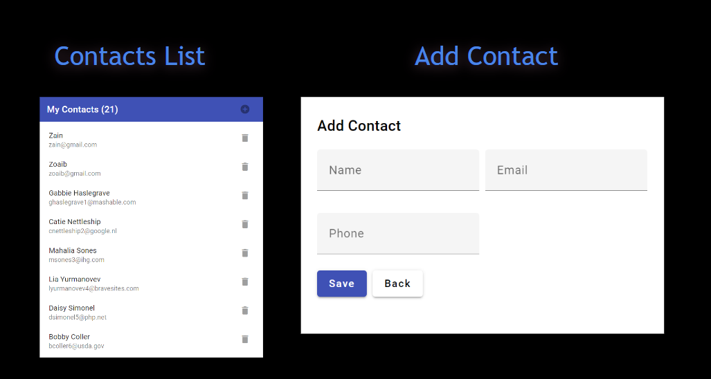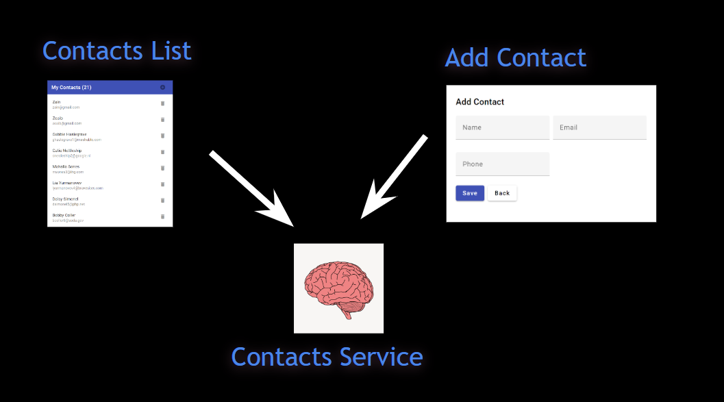 Let me first give you a quick rundown of my app. So my app has basically two components - one shows the contacts list and the other shows the add contact form.