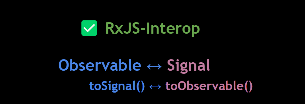 But this is also where the rxjs-interop package comes in. Released in v16 as well, this provides for functions like toSignal and toObservable - meant to convert an observable to a signal and vice versa.