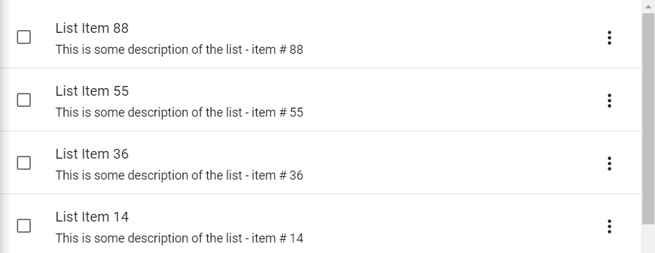 Our starting point in this tutorial will be our existing list which we created in my previous post on infinite scrolling list.