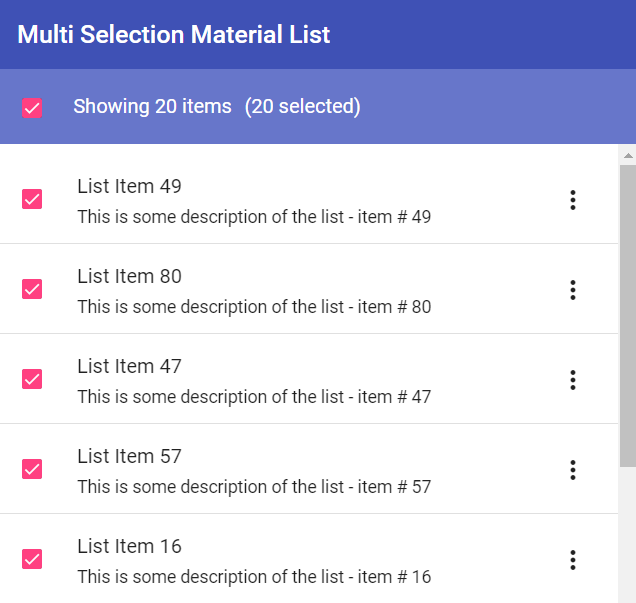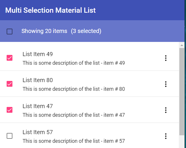In a previous post, we created an Angular material list with infinite scroll. In this post, we're going to convert that into a Multi Select List with the Angular CDK Selection Model.