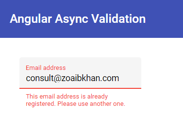 In our email validation case, we need to make a network call to check whether this email is already registered. So this is an async validation since we need to wait for the network call before we can inform the user about the validity of the angular form.