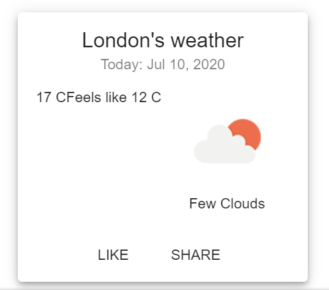 Cards an essential UI element nowadays for almost any web application. Here is how to create a simple Angular Material card which shows the weather for today.
